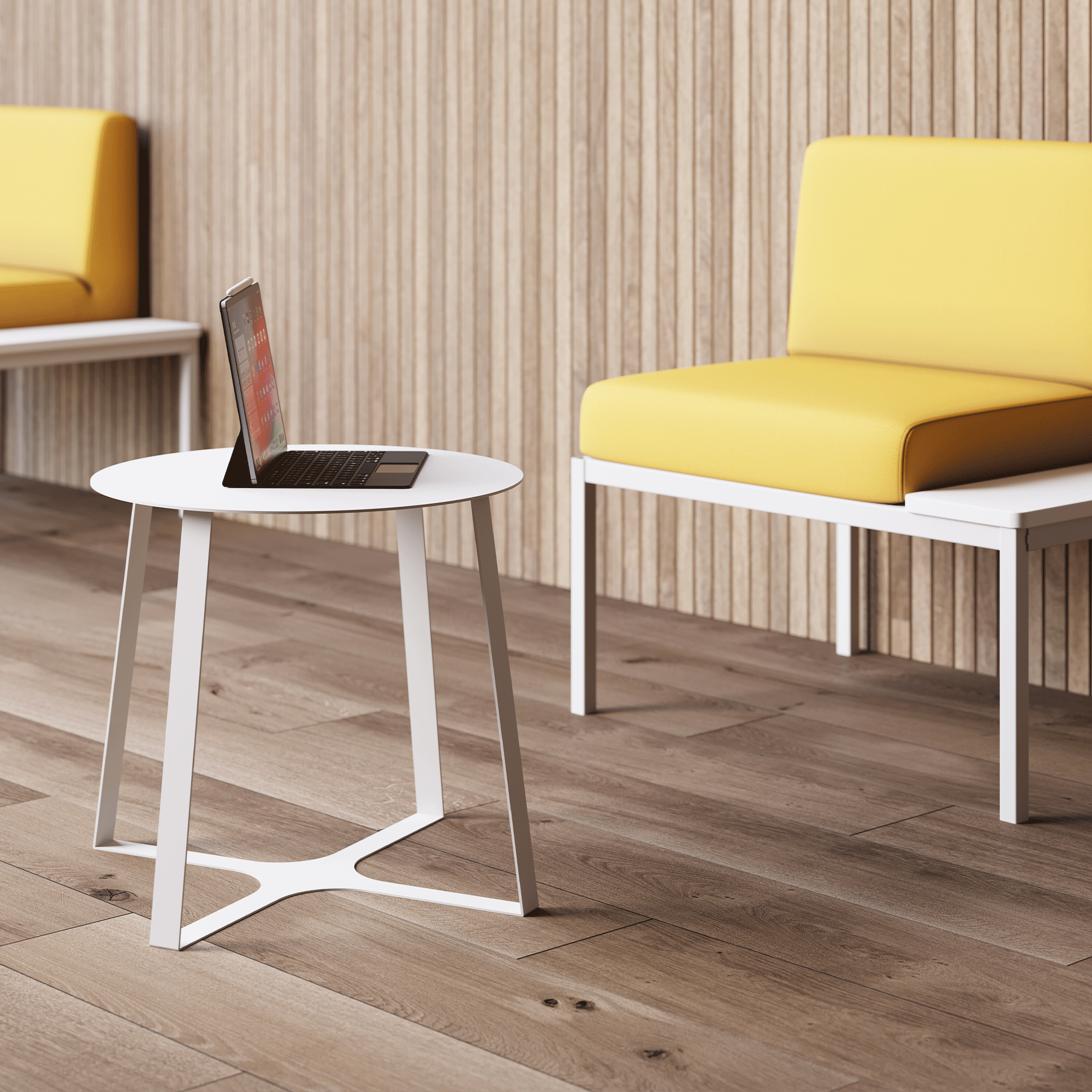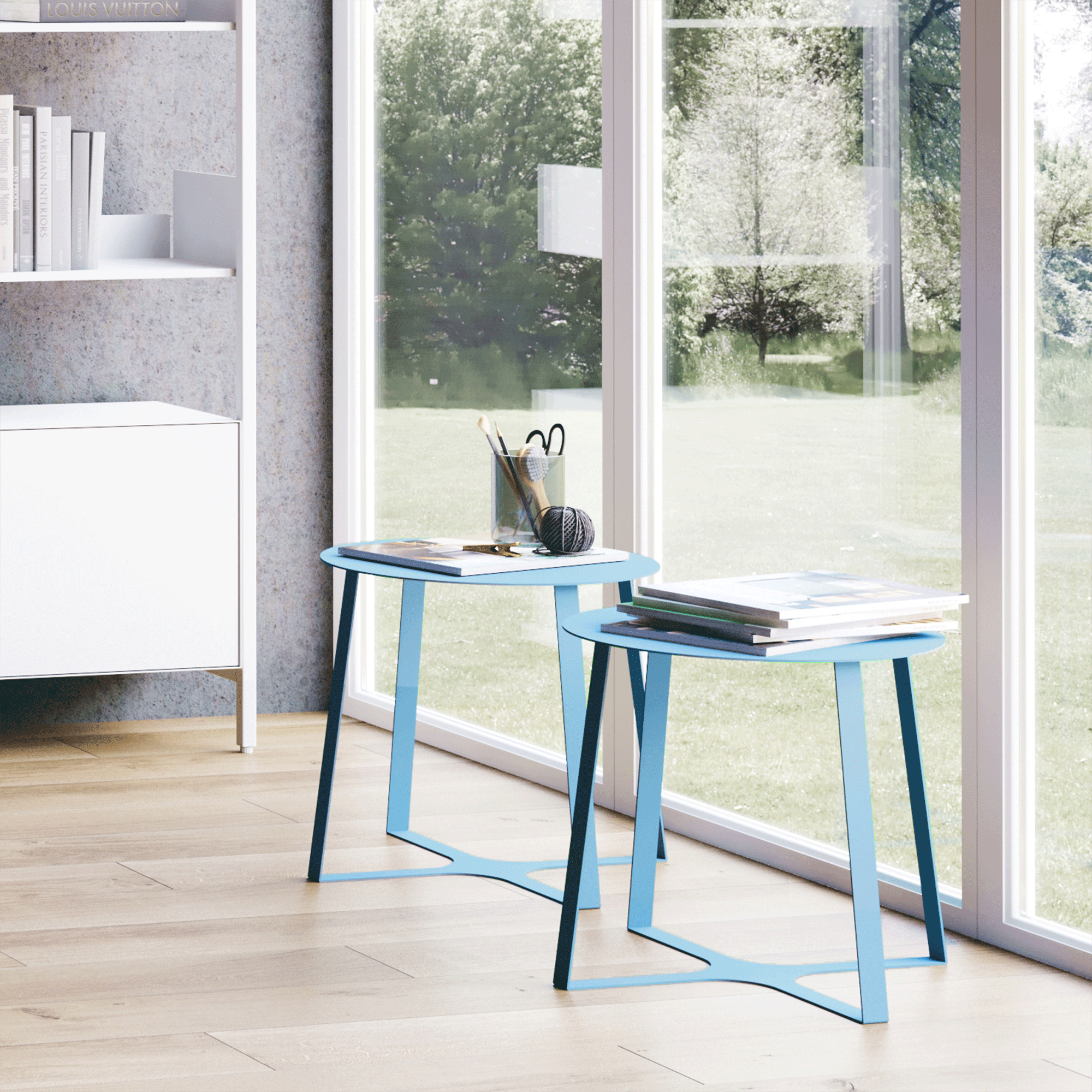 Kyoto Tables are defined by crisp geometry and Italian design sensibility. Inspired by the precision of folded forms, the sculptural base has an origami-like quality, with clean bends and sharp lines that feel intentional from every angle. Crafted from steel with an unexpectedly thin profile, Kyoto balances visual lightness with strength. Available in three sizes and six powder-coated colors, Kyoto brings refined character to lounges, collaborative spaces, and everyday settings alike.