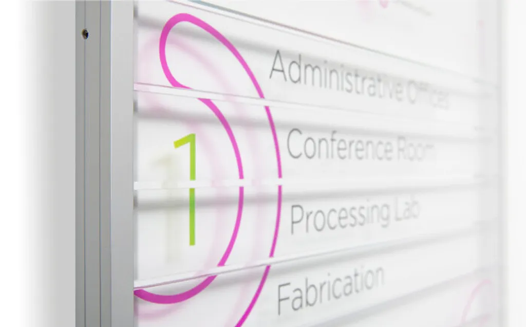 Lucid is the sign family with seemingly endless configurations of .25" non-glare acrylic, minimalist hardware and easy-to-replace components. Timeless, elegant and ready to speak what needs to be said without all the fuss.