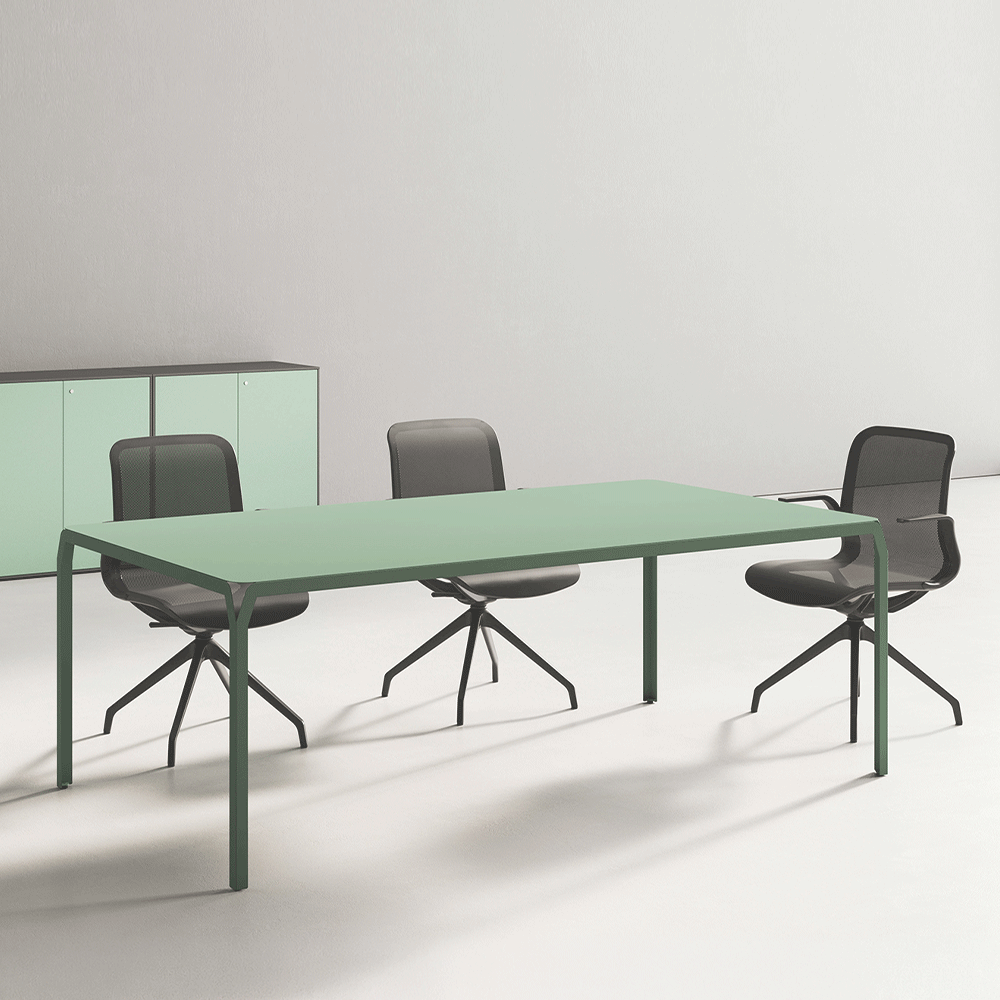 More than a desk, York functions as a versatile table suited for focused work, collaboration, and shared spaces. Its sustainable steel construction is paired with a refined palette of six powder-coat colors and three size options, allowing York to adapt effortlessly across a wide range of interiors.